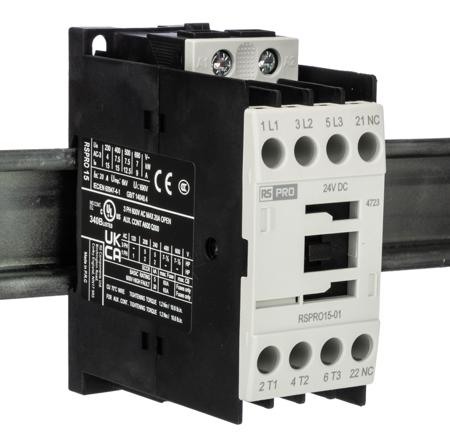 RS PRO Contactor, 24 V dc Coil, 3-Pole, 15 A, 7.5 kW 24 V, 1 NC, 690V