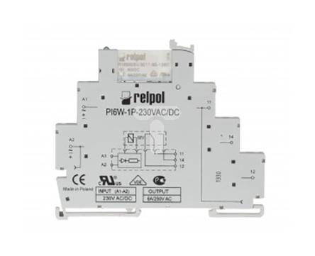 Relpol PIR6W Series Interface Relay, DIN Rail Mount, 230V ac Coil, SPDT, 1-Pole, 6A Load