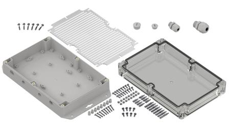 RS PRO Light Grey Polycarbonate General Purpose Enclosure, IP65, Flanged, Transparent Lid, 209.9 x 60 x 139.9mm
