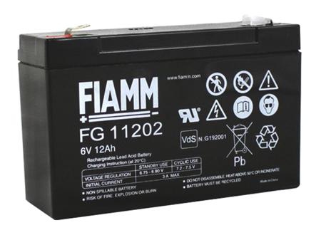 Fiamm 6V Faston F2 Sealed Lead Acid Battery, 12Ah