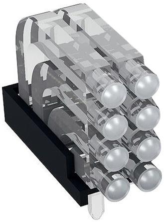 1296.2024 MENTOR, PCB Mounted 8-Way Right Angle LED Light Pipe, Quad-Level-Row Clear Dome Lens