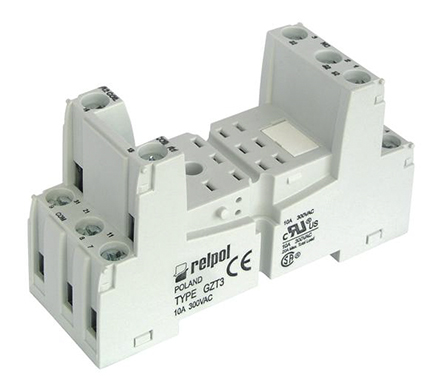 Relpol 11 Pin 300V ac DIN Rail Relay Socket, for use with R3N Relay
