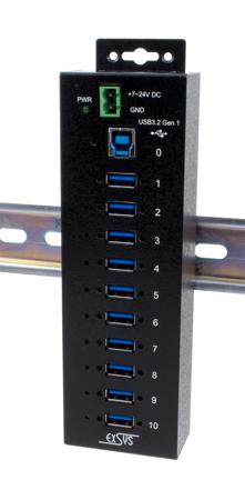 Exsys 10 Port USB 3.2 Hub, Terminal Connector Powered, 198 x 55 x 30mm