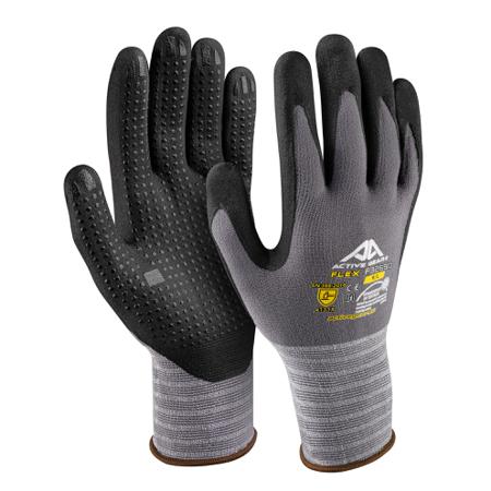 Active Gear Black, Grey Nylon, Spandex Nylon Work Gloves, Size 9/L, Nitrile Micro-Foam Coating