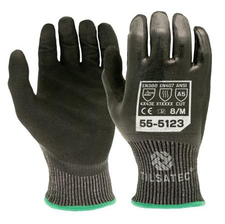 Tilsatec Black, Grey HPPE, Polyamide, Polyethylene Terephthalate, Spandex, Steel Glove, Size 11, Nitrile Coating